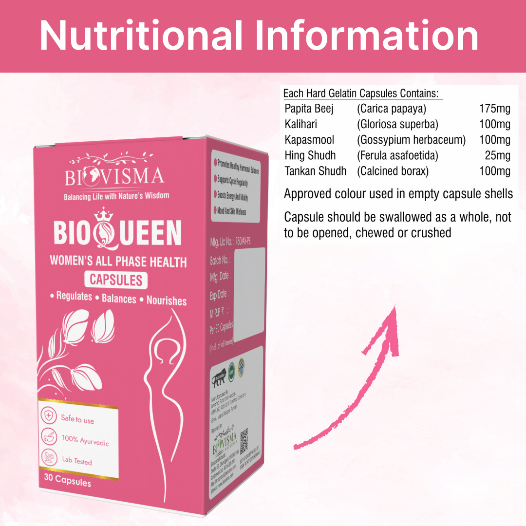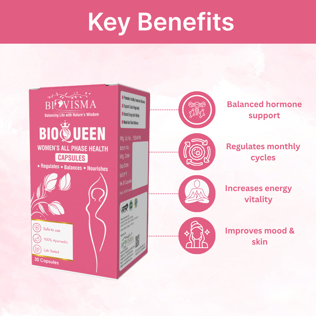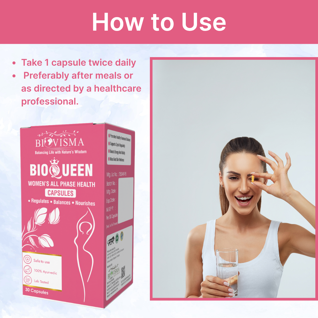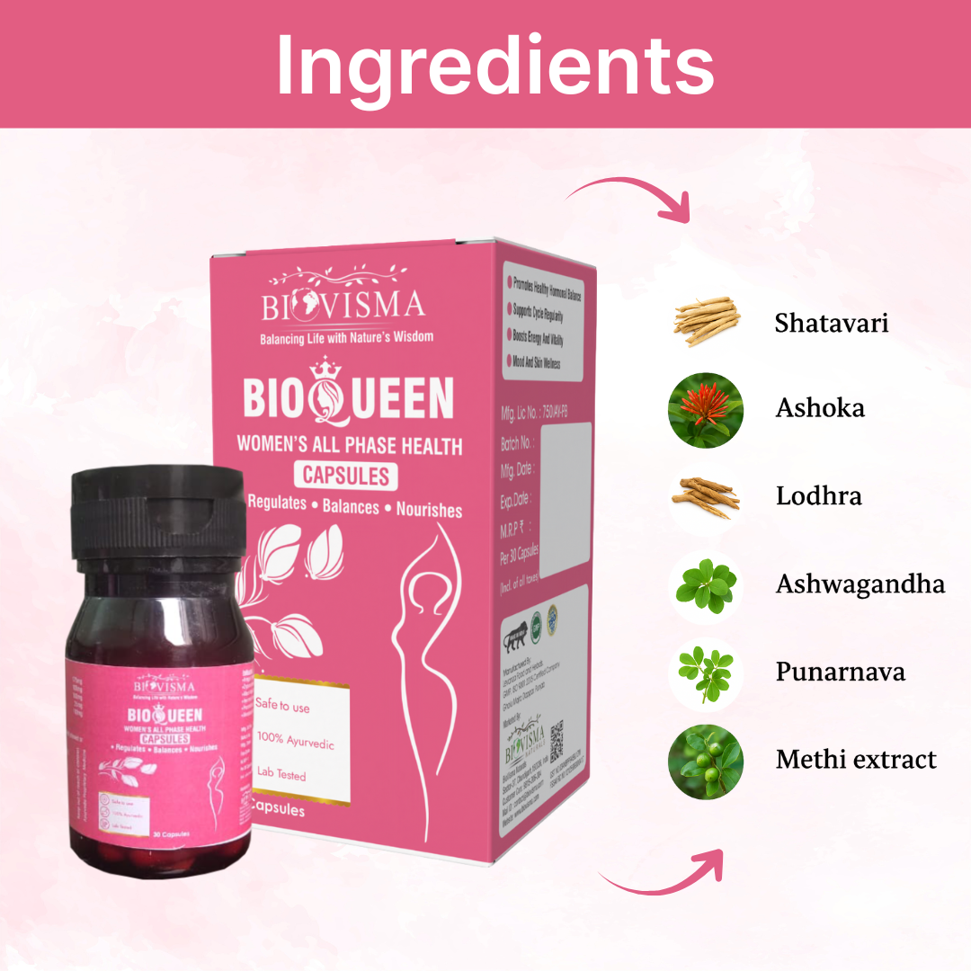 BIOQUEEN Ayurvedic Women’s Wellness Combo | Period Comfort, Cycle Support & Daily Energy | Sugar-Free Syrup 200 ml + 30 Capsules