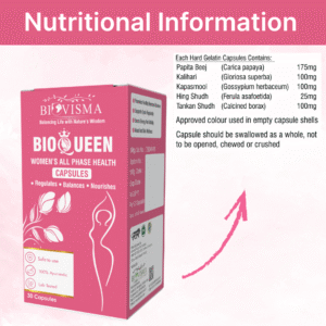BIOQUEEN Women’s Wellness Combo is formulated with Ayurvedic ingredients to support monthly comfort, balanced cycles, and everyday energy. This sugar-free pack includes a 200 ml syrup and 30 capsules designed to promote general wellness, mood balance, and active lifestyle support.