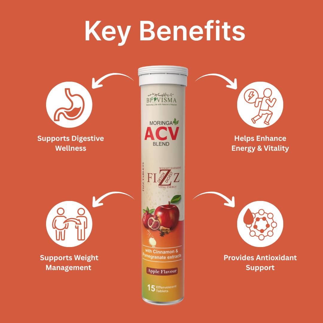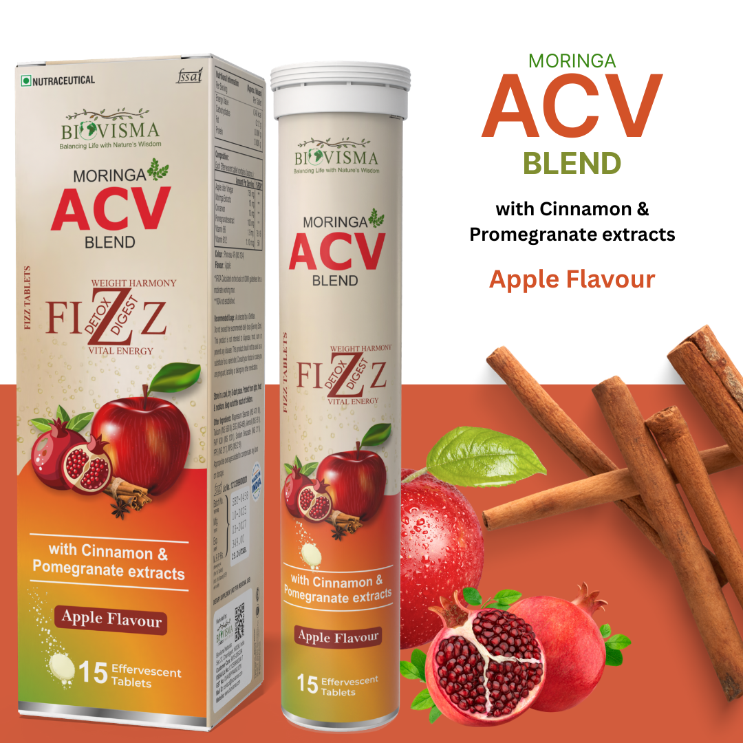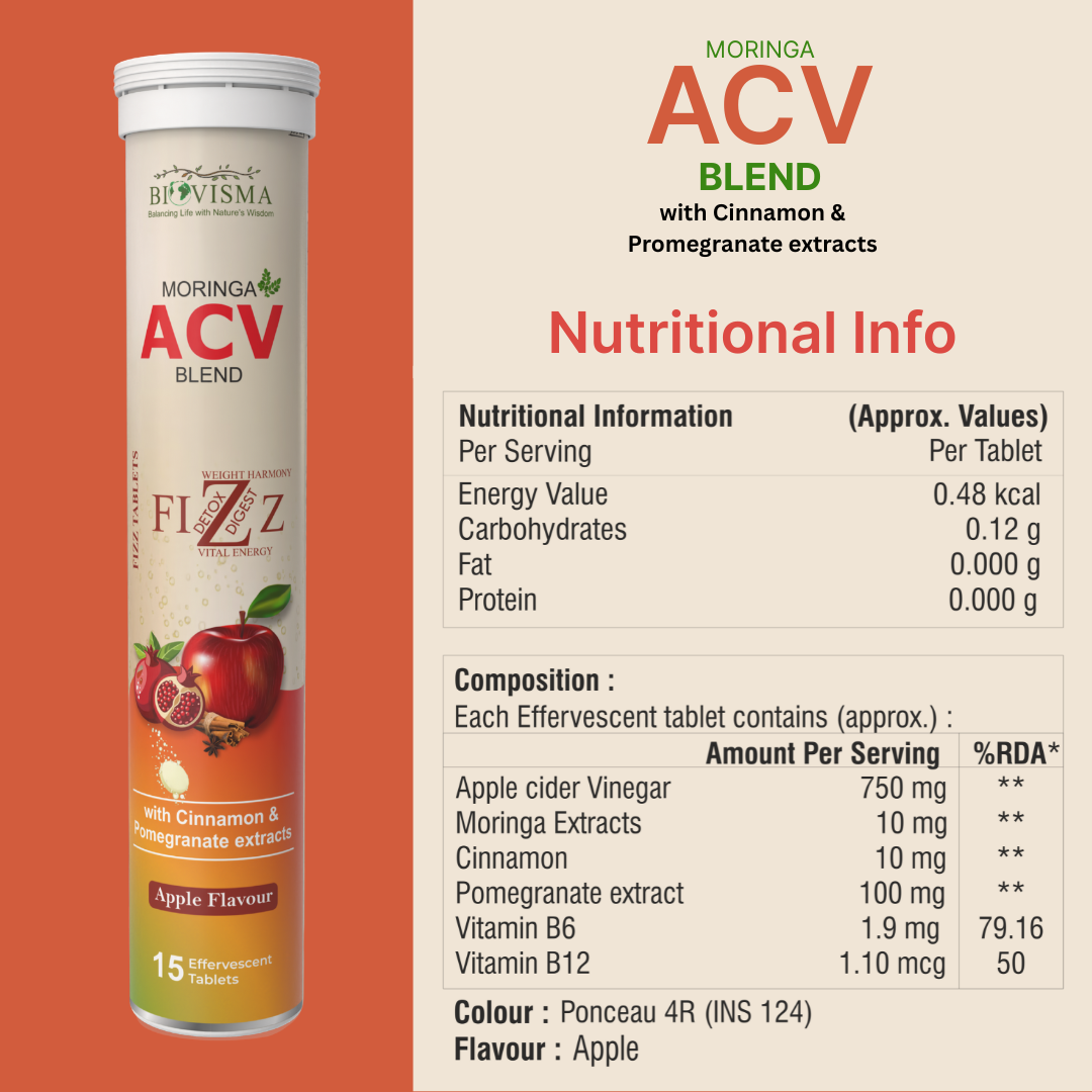 BIOVISMA ACV Moringa | Control Cravings | Apple Flavor | 15 Tablets